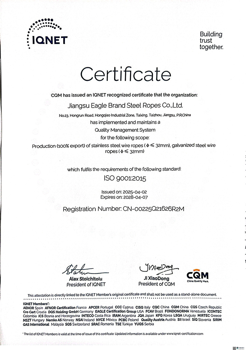 Jiangsu Eagle Brand Steel Wire Rope Co., Ltd., is a pioneer manufacturer in China specializing in steel wire and steel rope products. Over the past 30+ years, we have grown to have an ISO......